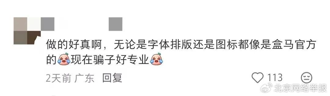 据了解,骗子模仿盒马鲜生制作了“盒马试用卡”和“盒马试吃卡”,通过线下派送等方式,投递到消费者家中。卡片样式精美,网友直呼“太真了”。