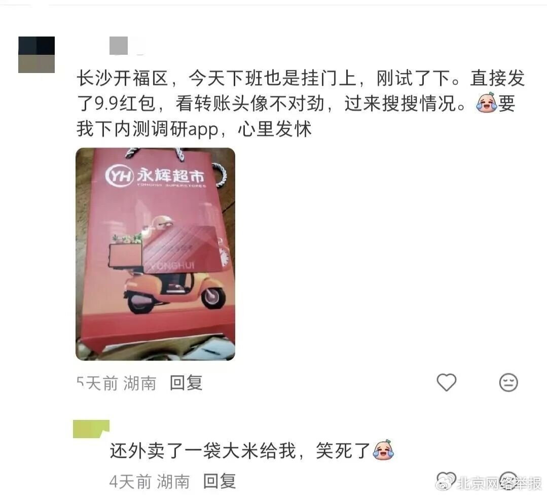 值得一提的是,在不少“试吃卡骗局”帖子下,都有网友评论称扫码后确实收到了商品。还有网友称可以进群薅羊毛,自己收到𱅅.9元,甚至有网友自称薅骗子羊元。
